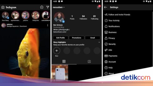 Sampai saat ini memang belum semua pengguna Instagram menikmati fitur gelap-gelapan tersebut, baru sebagian, mengingat ini baru versi beta. Untuk merasakan dark mode itu, perangkatnya diharuskan sudah memakai OS Android Pie dan Android 10.